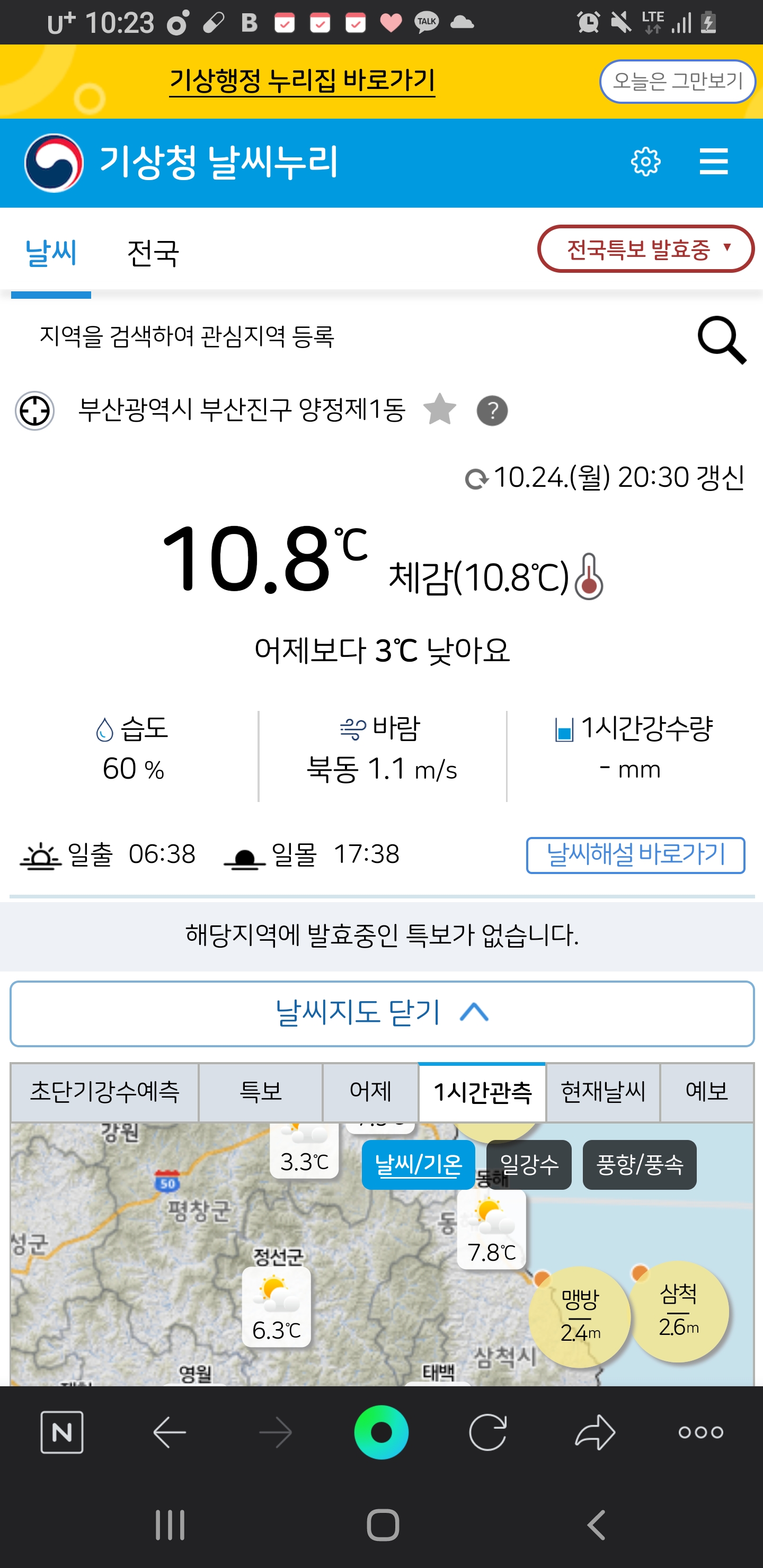 기상청을 통해, 금일의 현재 기온을 확인 가능